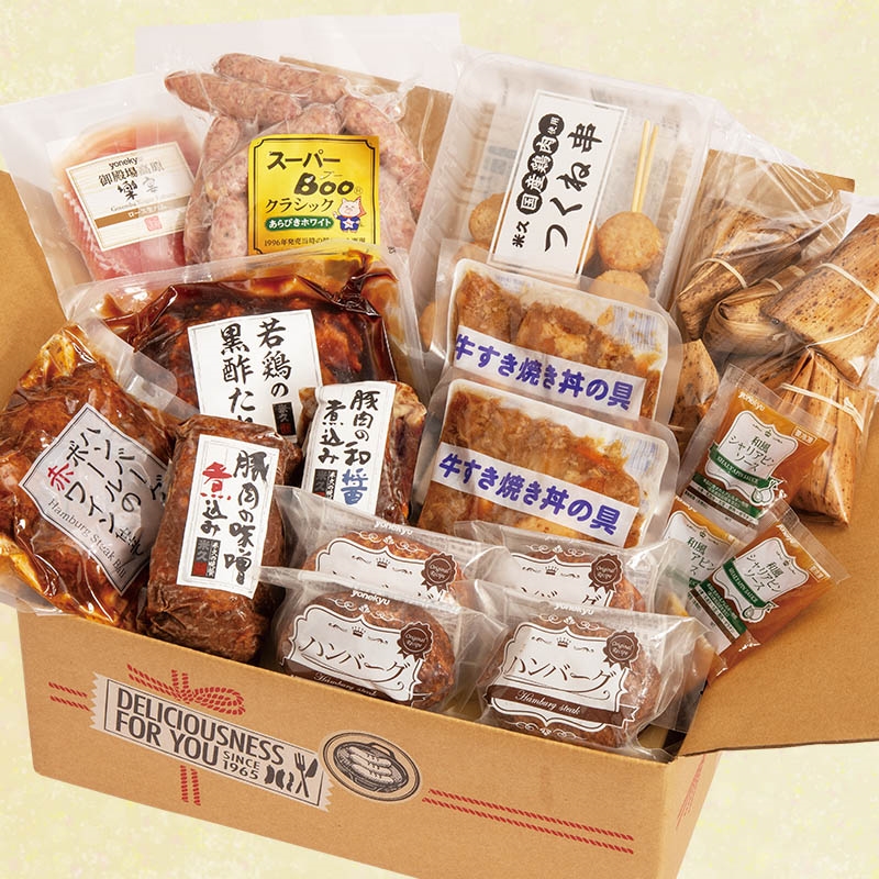 <豚肉の和醤煮込み>豚ばら肉(輸入)、砂糖、しょう油、粉末しょう油、発酵調味料、清酒、食塩、大豆たん白、香辛料、ぶどう糖果糖液糖、乳たん白、水あめ、おろしにんにく、粉末野菜エキス、酵母エキス / 増粘剤(加工デンプン)、カラメル色素、リン酸塩(Na)、調味料(アミノ酸)、酸味料、(一部に小麦・乳成分・大豆・豚肉を含む)