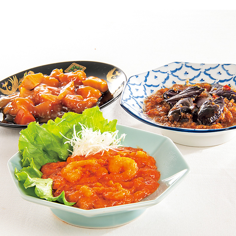 ※!海老のチリソース、麻婆茄子は、辛めの味付けになっておりますので、お子様や辛いものが得意でない方はご注意ください。