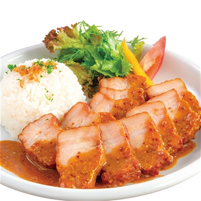 豚ばら肉(輸入)、からし、粒入マスタード、トマトケチャップ、デミグラスソース、ウスターソース、しょう油、ぶどう糖果糖液糖、砂糖、ワイン、精製はちみつ、食塩、発酵調味料、おろしにんにく、みそ、水あめ、香辛料、粉末状大豆たん白、乳たん白、粉末しょう油、酵母エキス/増粘剤(加工デンプン)、pH調整剤、調味料(アミノ酸等)、着色料(カラメル、ウコン)、リン酸塩(Na)、くん液、香辛料抽出物、酸味料、甘味料(カンゾウ)、(一部に小麦・乳成分・牛肉・大豆・豚肉を含む)