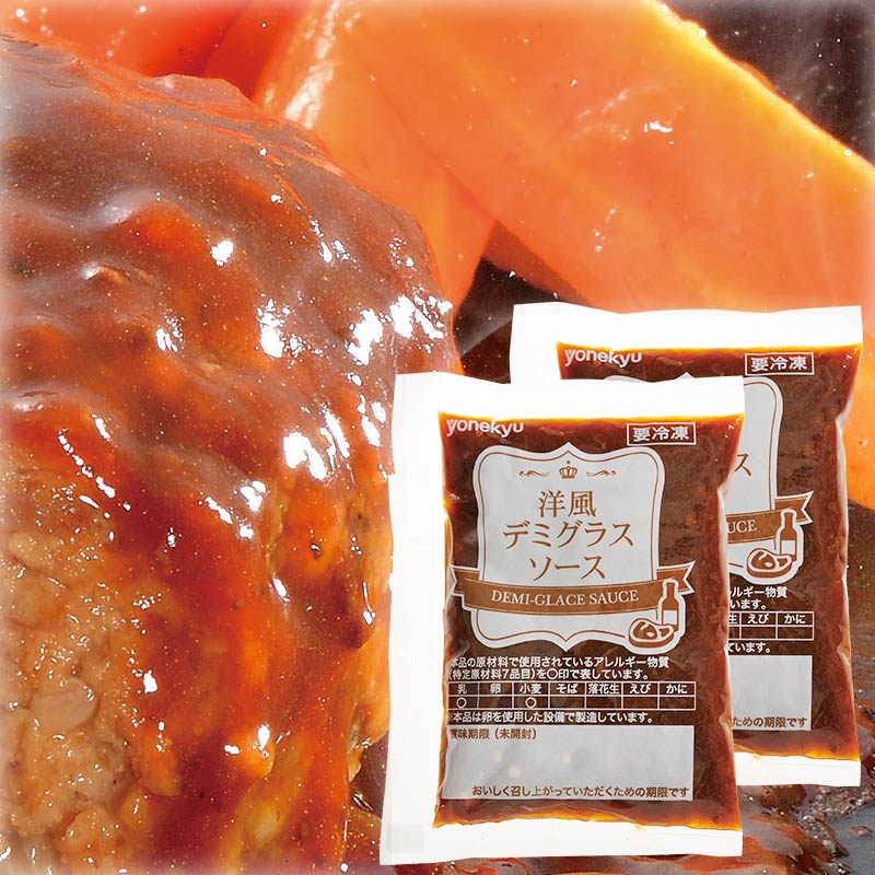 玉ねぎ(国産)、トマトケチャップ、ブラウンソース、しょう油、牛肉、牛脂、ぶどう糖果糖液糖、バター、小麦粉、ビール、ワイン、おろしにんにく、砂糖、マデラ酒、水あめ、野菜ブイヨン、醸造酢、オイスターソース、ポークエキスパウダー、チキンコンソメ、香辛料 / 増粘剤(加工デンプン、タマリンドガム)、カラメル色素、調味料(アミノ酸等)、酸味料、香料、(一部に小麦・乳成分・牛肉・大豆・鶏肉・豚肉・ゼラチンを含む)