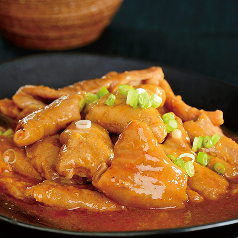 2回ボイルしてやわらかく仕上げた国産もつを、ピリ辛のみそ味で。湯煎であたためてそのままはもちろん、お好きな野菜と一緒に炒めたり、お鍋で煮たりとアレンジも楽しめるひと品です。