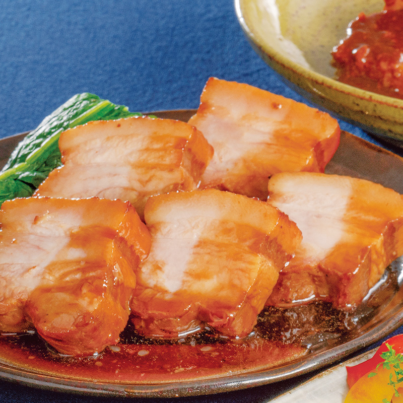 原材料名豚ばら肉(輸入) 、砂糖 、しょう油 、粉末しょう油 、発酵調味料 、清酒 、食塩 、大豆たん白 、香辛料 、ぶどう糖果糖液糖 、乳たん白 、水あめ 、おろしにんにく 、粉末野菜エキス 、酵母エキス / 増粘剤(加工デンプン) 、カラメル色素 、リン酸塩(Na) 、調味料(アミノ酸) 、酸味料、(一部に小麦・乳成分・大豆・豚肉を含む)