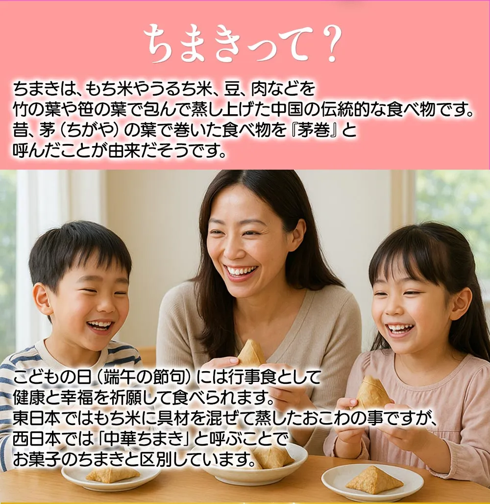 凍ったまま袋から取り出し、竹皮を取らずに、水にくぐらせたちまきを耐熱皿に並べて、ふんわりとラップをかけ、1個につき電子レンジ(600Wの場合)で約1分30秒加熱してください。