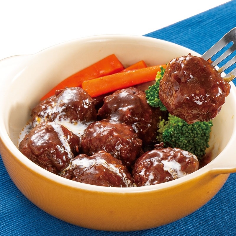 <ハンバーグボールの赤ワイン仕立て>
