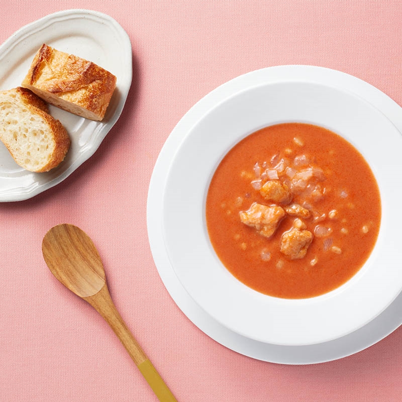 牛乳(国内製造)、たまねぎ(中国)、もち麦(アメリカ)、トマトソース、シチュールウ、鶏肉(ブラジル)、トマトケチャップ、砂糖、チキンエキス調味料、ゼラチン、発酵調味料、しょうゆ、乾燥卵白/調味料(アミノ酸等)、pH調整剤、加工でん粉、乳化剤、香料、焼成Ca、着色料(カロチノイド)、(一部に小麦・卵・乳成分・大豆・鶏肉・豚肉・ゼラチンを含む) 原材料配合割合:たまねぎ8%、もち麦6%、鶏肉3%(仕込み時) ◎賞味期限は未開封、-18℃以下の状態で設定されています。 ◎開封または加熱調理後は、お早めにお召し上がりください。 ◎一度解凍したものを再び凍らせると、品質が変わることがありますのでご注意ください。 ◎ご家庭の冷凍室は温度変化が大きいので、購入後は賞味期限内であってもお早めにお召し上がりください。