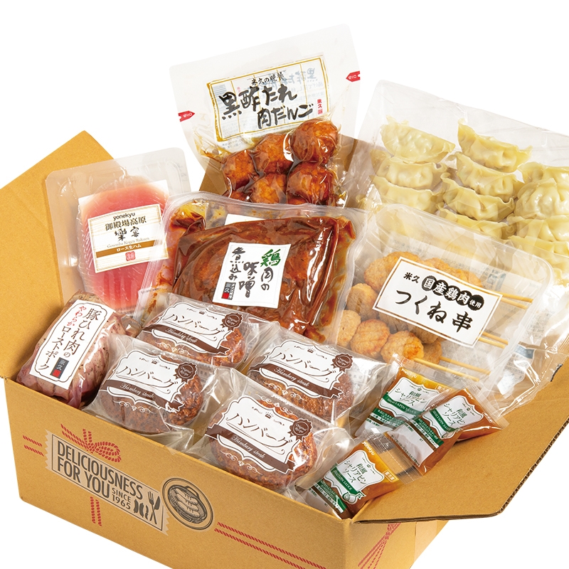 <つくね串>鶏肉(国産)、鶏皮(国産)、玉ねぎ(国産)、パン粉、しょう油、卵白、砂糖、でん粉、粒状大豆たん白、大豆油、粉末状大豆たん白、食塩、清酒 / リン酸塩(Na)、キシロース、調味料(アミノ酸)、着色料(紅麹、ラック、カロチノイド)、香料、酸味料、(一部に小麦・卵・乳成分・大豆・鶏肉を含む)