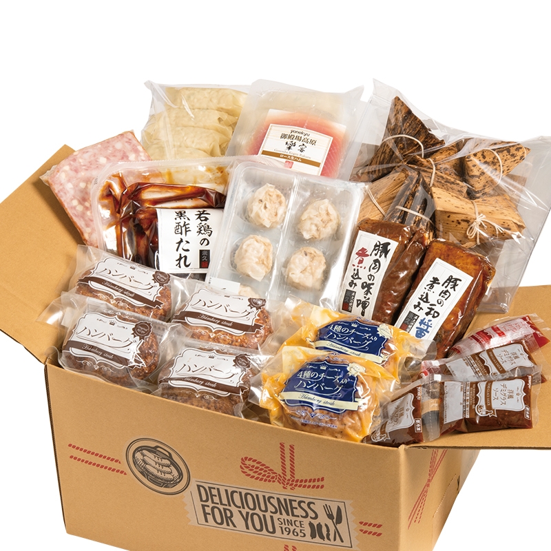<豚肉の和醤煮込み>豚ばら肉(輸入)、砂糖、しょう油、粉末しょう油、発酵調味料、清酒、食塩、大豆たん白、香辛料、ぶどう糖果糖液糖、乳たん白、水あめ、おろしにんにく、粉末野菜エキス、酵母エキス / 増粘剤(加工デンプン)、カラメル色素、リン酸塩(Na)、調味料(アミノ酸)、酸味料、(一部に小麦・乳成分・大豆・豚肉を含む)