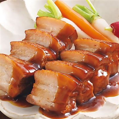 角煮の正統派、醤油ベースに、隠し味のおろしにんにくなどを加えて、すっきりとした味付けに。 ローストと真空調理で、一層やわらかに仕上げました。