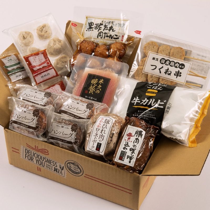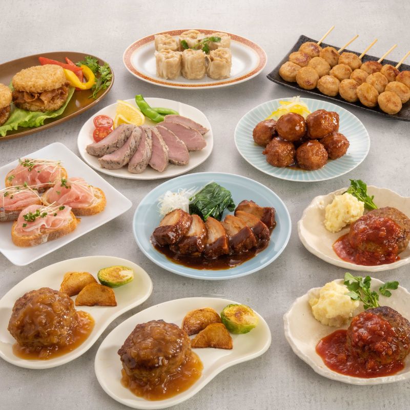【黒酢たれ肉だんご】 食肉(鶏肉(国産)、豚肉(国産))、野菜(玉ねぎ(国産)、ねぎ)、つなぎ(パン粉、でん粉、粉末状大豆たん白)、豚脂、鶏皮、植物油脂、ぶどう糖、粒状大豆たん白、清酒、食塩、砂糖、かつお節エキス、香辛料、粉末濃縮スープ / 調味料(アミノ酸等)、リン酸塩(Na)、重曹、ソース(砂糖、しょう油、醸造酢、ぶどう糖果糖液糖、マンゴーピューレ、発酵調味料、黒酢、水あめ、ウスターソース、食塩、ごま油、小麦たん白加水分解物、オイスターソース / 増粘剤(加工デンプン)、カラメル色素、調味料(アミノ酸等)、甘味料(カンゾウ))、揚げ油(大豆油)、(一部に小麦・卵・乳成分・ごま・大豆・鶏肉・豚肉を含む)
